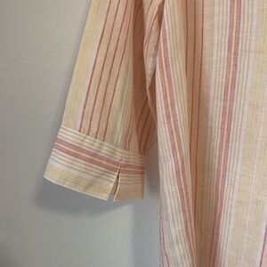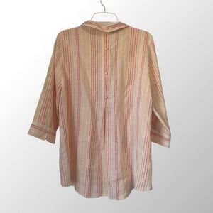 Chicos 100% Linen No Iron Striped Button Up Shirt Womens Size 2 Large