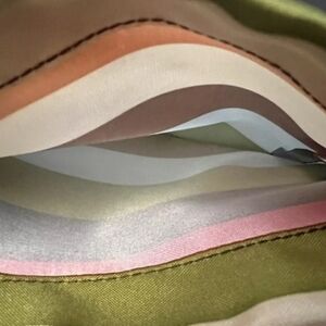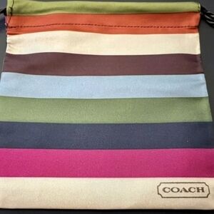 Lot of 3 Vibrant Satin Coach jewelry pouches with multicolor stripes. Features drawstring closure.Perfect for storing and gifting jewelry. Rare Find