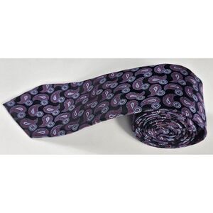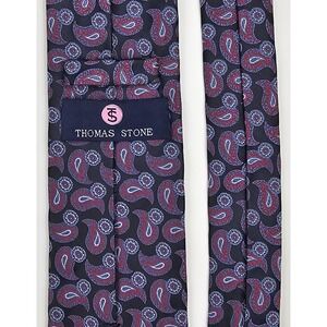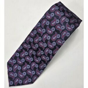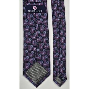 Thomas Stone Tie 100% Polyester Hand Made Black Purple Red Silver Paisley