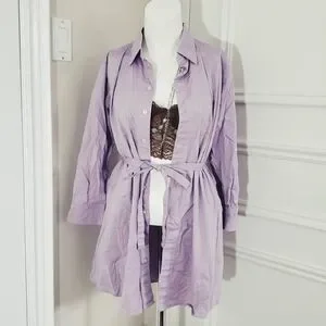 New American Apparel Belted Chamblay Lilac Shirt Dress