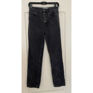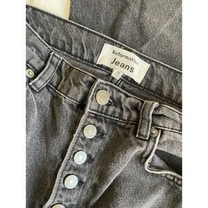 Reformation Cynthia Button Fly High Rise Straight Jeans in black size 25