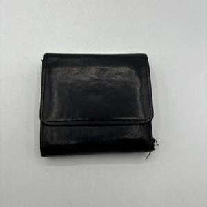 VTG Coach Black Leather Trifold Wallet Coin Purse Kiss Lock Snap Closure