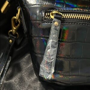 Sharif Black Iridescent Croc-Embossed Leather Bag NWT