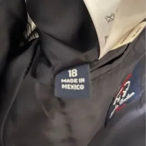 Sophisticated navy blazer with striking gold buttons. Ideal for formal events. 18
