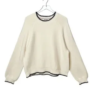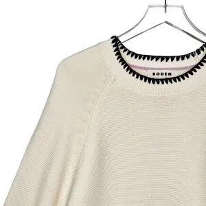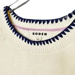 NWOT Boden Lena Cream Stitch Detail Jumper Women’s Bishop Sleeve Sweater Sz L
