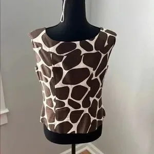 Brown spotted sleeveless Carlisle top US size six with 100% linen outside in 100% acetate