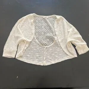 Mudd Girls Cream Crochet Knit Open Front Cardigan Shrug Size 12