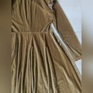 Ivy City Co La La Lady Midi Gold Velvet Holiday Long sleeve Modest Dress S