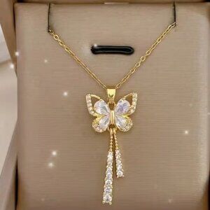 butterfly 14 k Gold over Stainless Steel Necklace Disc Shipping