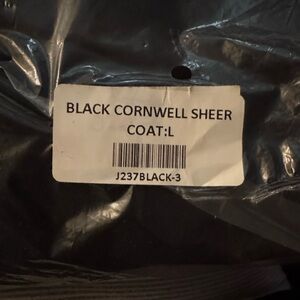 Elegant sheer trench coat. Double-breasted design. Belted waist for a tailored fit. Perfect for layering.