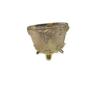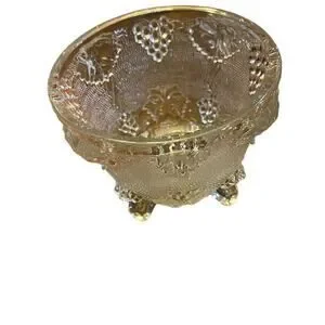 This vintage candy dish is a unique addition to any collection. The embossed glass design features grapes and leaves, with a footed base for stability. Made of clear glass, it is an antique piece with an unknown age and origin. The unit quantity is one, and it is an original piece, not a reproduction. Perfect for collectors of decorative items, this dish is a must-have for those who appreciate vintage glassware.