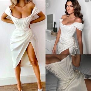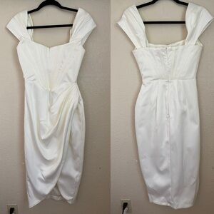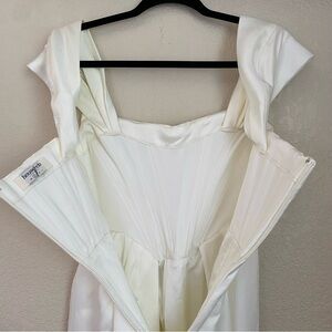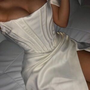 House Of CB Loretta Ivory Satin Strapless Dress white corset midi NWOT size S