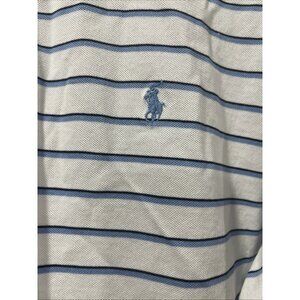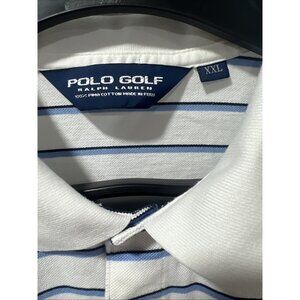 Polo Ralph Lauren Golf Polo Men’s XXL White Blue Pony Striped 100% Pima Cotton.