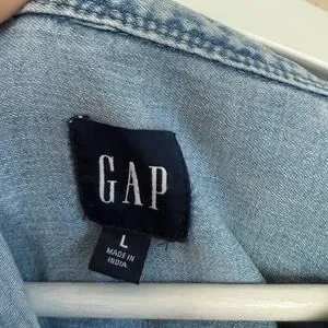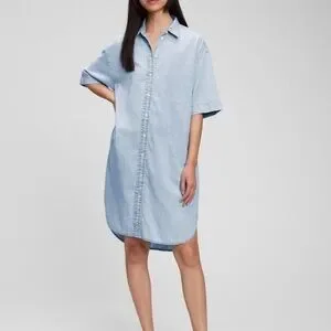GAP Denim Chambray Short Sleeve Button Down Dress Relaxed Fit Light Wash