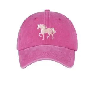Stylish pink cap featuring a white horse print on front. Perfect for casual wear and the horse enthusiasts