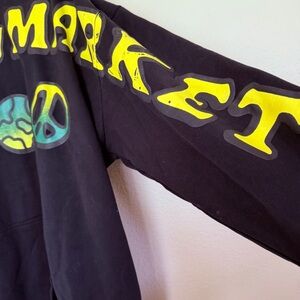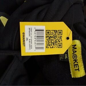 Black hoodie featuring bold yellow and blue graphic designs. Comfortable and stylish for everyday wear.