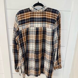 CAFE MARRAKESH S Brown plaid woman 1/2 button long sleeve rayon flannel