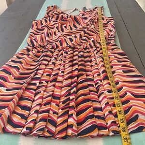 DKNY Wave Print Cowl Neck Sleeveless Pleated Dress NWT Size 10