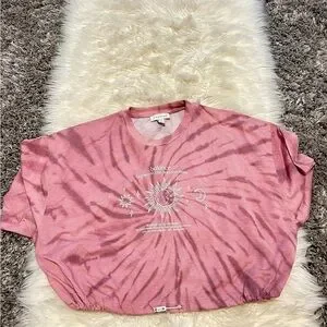 Embrace celestial style with this mauve tie-dye cropped tee. Featuring a unique sun and moon graphic with "balance" text, this trendy top adds a touch of cosmic charm to any outfit. The soft fabric and cropped silhouette make it perfect for warm weather or layering. Express your unique style with this eye-catching piece.