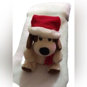 Delight your pet with this adorable plush dog toy featuring a festive red Santa hat. Perfect for holiday playtime and cuddles. Preowned great condition no flaws