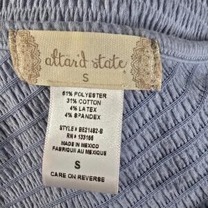 Altar’d State women’s one-shoulder smocked crop top in light blue, size Small. Cute, trendy top—perfect with high-waisted jeans/shorts or a skirt.