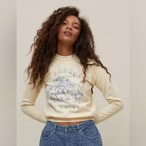 Urban Outfitters Mushroom Girl Graphic Sweatshirt Cream Blue Cottagecore Top