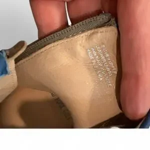 **minor damage on leather-inside cuff on Left shoe - cannot see from outside - like new customer
