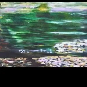 Vintage oil painting of a lily pond