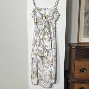 dress with floral print. Features spaghetti straps. Ideal for casual outings.