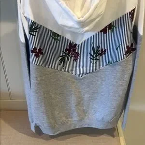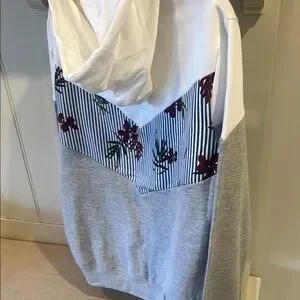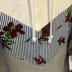 NWT: Black Jack Trendy hoodie featuring a white and gray color scheme with a floral design. Perfect for casual wear. Love this for Spring /summer!