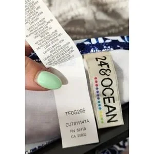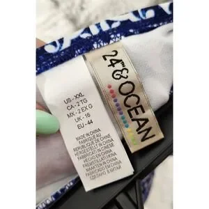 24th + Ocean Womens Bikini Bottoms Size XXL Blue White Swimwear Geometric Beach