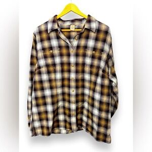 Women's Free Swingin' Flannel Shirt Brown Putty Check Size XL EUC