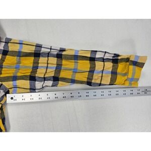 Aerie Plaid Pajama Set Button Up Shirt & Shorts Yellow Blue M Top S Shorts