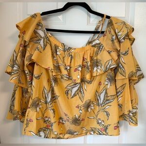 Express Off Shoulder Cropped Floral Yellow Top Sz S Tiered Bell Sleeve Summer