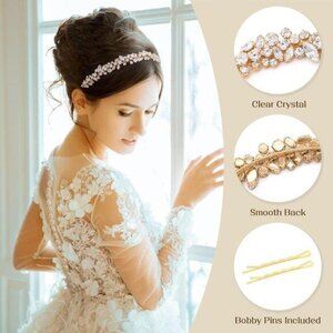 : Adorn your bridal hairstyle with this crystal wedding headband, featuring sparkling rhinestones that capture and reflect light for an eye-catching brilliance. The headband is designed to add a glamorous touch to your wedding day look