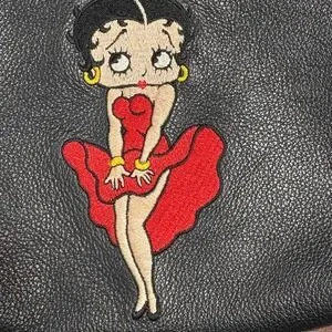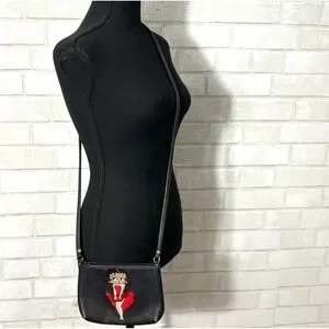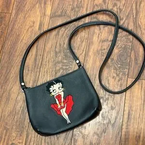 Vtg Betty Boop Embroidered Leather Crossbody Bag Black 90s Rare Novelty Pop Art