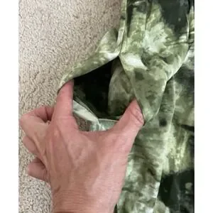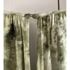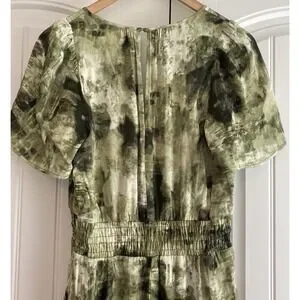 This jumpsuit is brand new with original tags. It's a soft satin fabric with elastic around the waist for comfort and pockets on each hip. Button closure at the nape of the neck. It's stunning! You can see in the pictures where the stitching isn't flat like it is on the opposite side. It's a manufacturer's discrepancy. It does not affect the fit or the wear of the jumpsuit at all.
