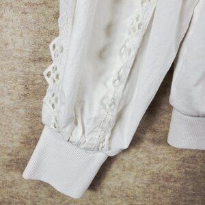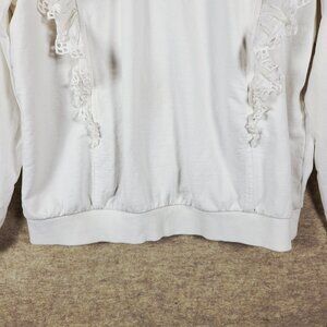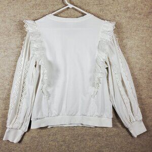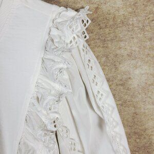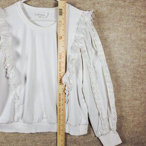Anthropologie Ruffle Top Size Large White Lace Embroidered Long Sleeve Coquette
