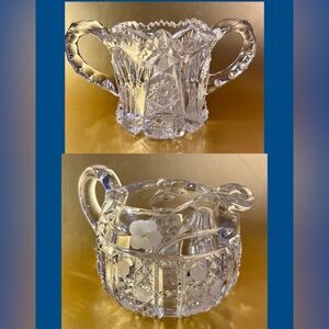 Imperial Glass Company Nucut #212 creamer and open sugar bowl set Diamond & Star