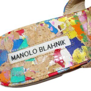 Manolo Blahnik Susa Spatter Paint Cork Flat Sandal Size 6.5