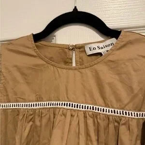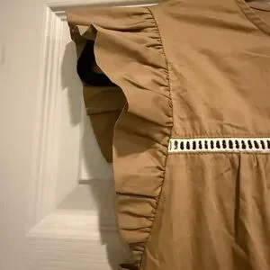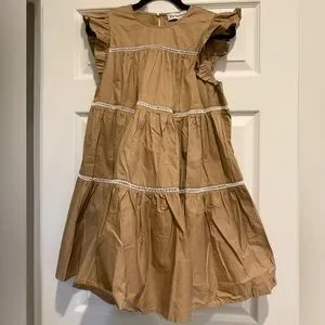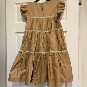• Features: Flutter sleeves, tiered silhouette, white lace inserts, back button closure