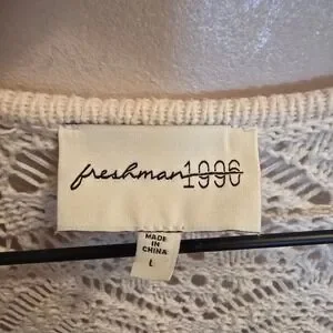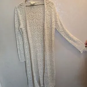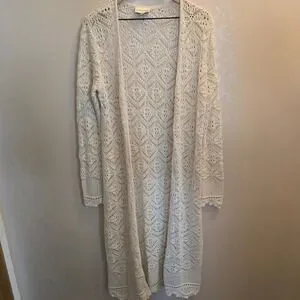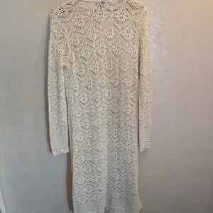 Freshman 1996 Ivory Crochet Knit Duster Cardigan Boho Longline Sweater - Size L