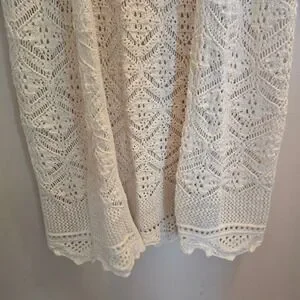 Keywords: Freshman 1996, Crochet Cardigan, Knit Duster, Longline Sweater, Boho Cardigan, Ivory Cardigan, Bohemian Sweater, Open Knit Cardigan, Women's Cardigan, Sweater Duster, Layering Cardigan, Size L, Cream Cardigan