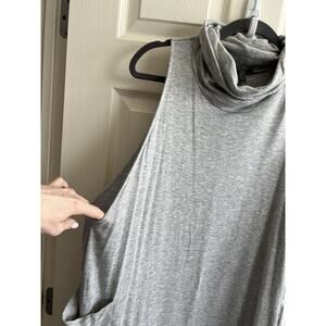 EILEEN FISHER Gray Tencel Jersey Funnel Neck Relaxed Midi Jumper Dress Sz L