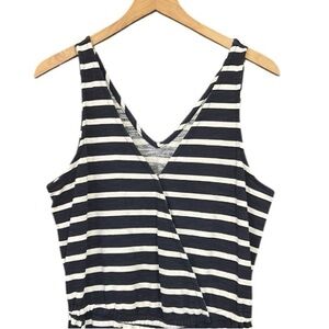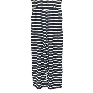 Old Navy Cropped Wide Leg Sleeveless Navy Striped Knit Jumpsuit Medium Tall