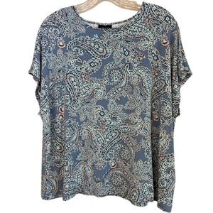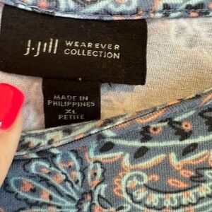 J. Jill Wearever Collection Blue Paisley Print Short Sleeve Tee Top XL Petite