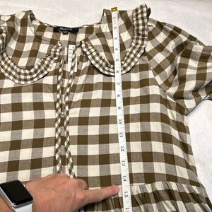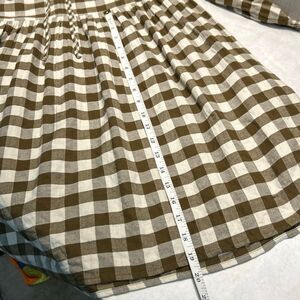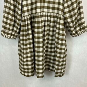 NEW Madewell Gingham Collared Puff-Sleeve Mini Dress Sz Medium Brown Tan Plaid C