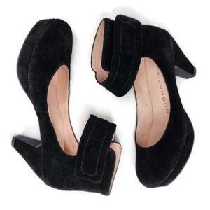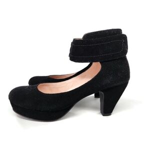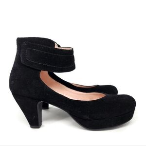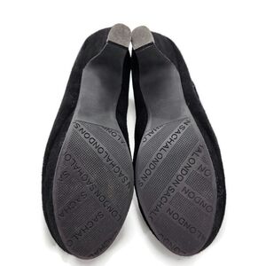 Sacha London Vera Black Suede Ankle Wrap Round-Toe Platform Pumps
