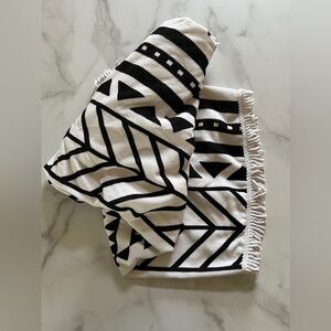Indian Mandala Microfiber Round Beach Blanket Tassels Soft Water Absorbent Towel Black White
