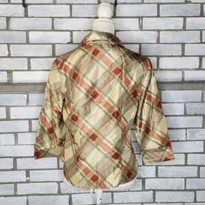 • Selene Sport Women's 3/4 Sleeve Plaid Button Up Blouse Medium Gold Multicolor